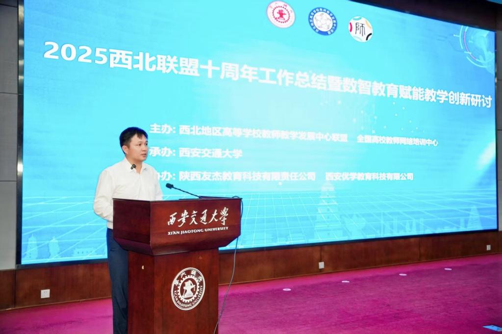 9月26-27日,西北地区高等学校教师教学发展中心联盟(以下简称“西北联盟”)十周年工作总结暨数智教育赋能教学创新研讨会在西安交通大学举办。教育部高等教育司综合处副处长夏韶华,陕西省教育厅高等教育处副处长杨鹏,西安交通大学党委常委、副校长洪军,全国高校教师网络培训中心主任张泽,西北联盟成员高校领导代表等出席。来自89所高校及4家企业成员单位的287名代表参会。会议由西北联盟、全国高校教师网培中心主办,西北联盟理事长单位西安交通大学承办。活动开幕式由西北联盟理事长、西安交通大学教师教学发展中心主任徐忠锋主持。