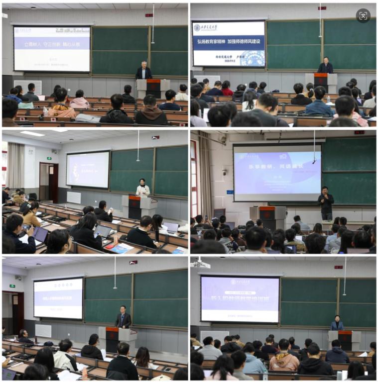 国家级教学名师、马克思主义学院教授卢黎歌作题为“师德师风是合格教师的立身之本——兼论弘扬教育家精神”专题报告。卢黎歌带领大家回顾学习了党和国家关于坚持把教师队伍建设作为基础工作的相关要求,系统阐述了教育家精神的六要素及其功能,解读了教育强国建设规划纲要(2024-2035)中关于建设高素质专业化教师队伍建设的相关要求。卢黎歌从教育所处的国家战略定位、两个大局对人才及其培育的要求、党的教育方针、教师职责使命等六个角度讲解加强师德师风建设的必要性,指出教师应努力成为“经师”和“人师”的统一者。他强调,“认真教”是教师的天职,解惑为提高,传道为目的,教师在讲道理时要做到以问题为导向,将问题“讲深、讲透、讲活”,并从教材转化、教学设计、教学研究、语言表达、课堂驾驭、课程思政等十二个方面提出了新教师应练就的教学基本功。