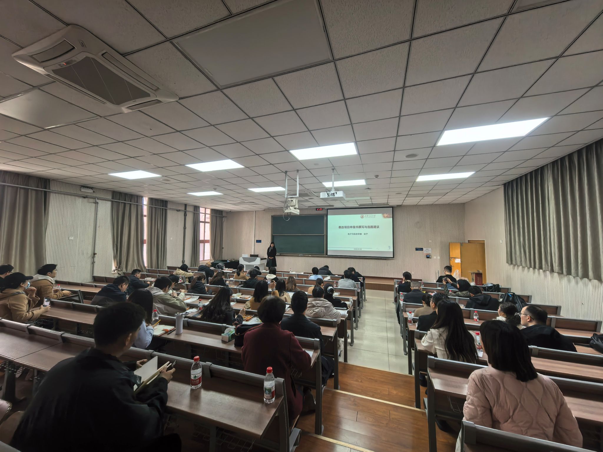 活动现场,两位老师与参会教师进行了互动答疑,针对教师提出的科研背景向教改项目转化、研究内容与创新点数量把控等实际问题进行了详细解答。此次活动内容翔实、实操性强,既为教师们梳理了教改项目申报的全流程要点,也针对申报中的常见问题、易错点给出了具体解决方案,有效解决了教师在教改项目申报中的困惑,为学校教师提升教改项目申报质量、开展高质量教学改革研究奠定了坚实基础。