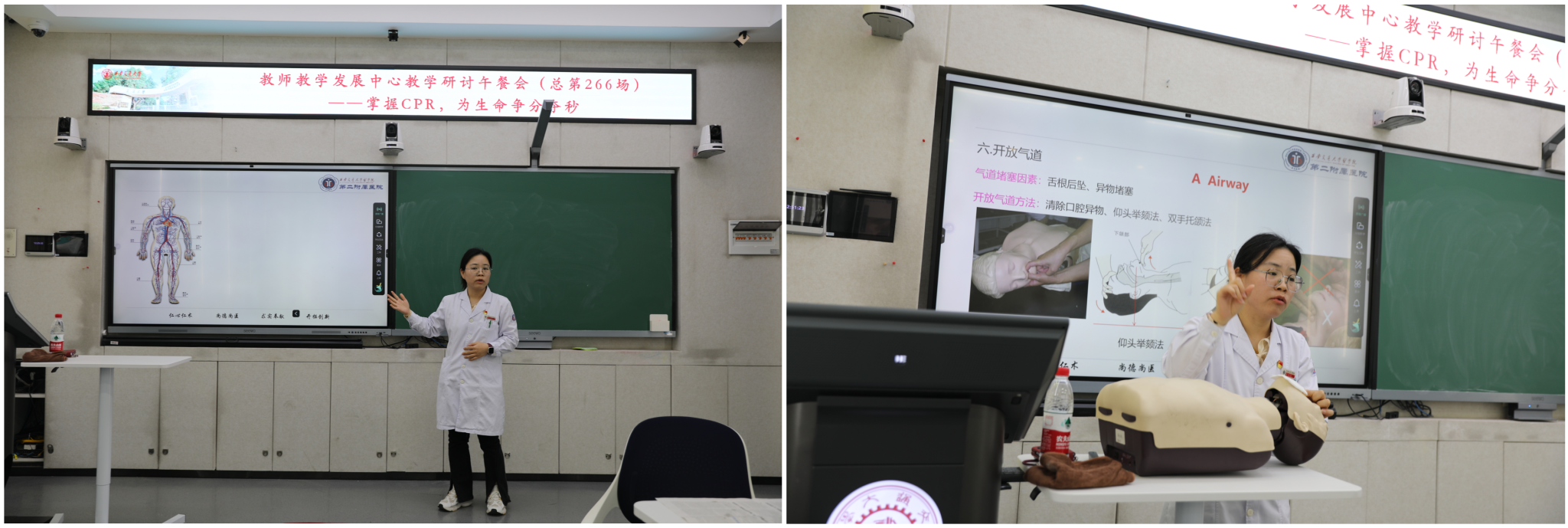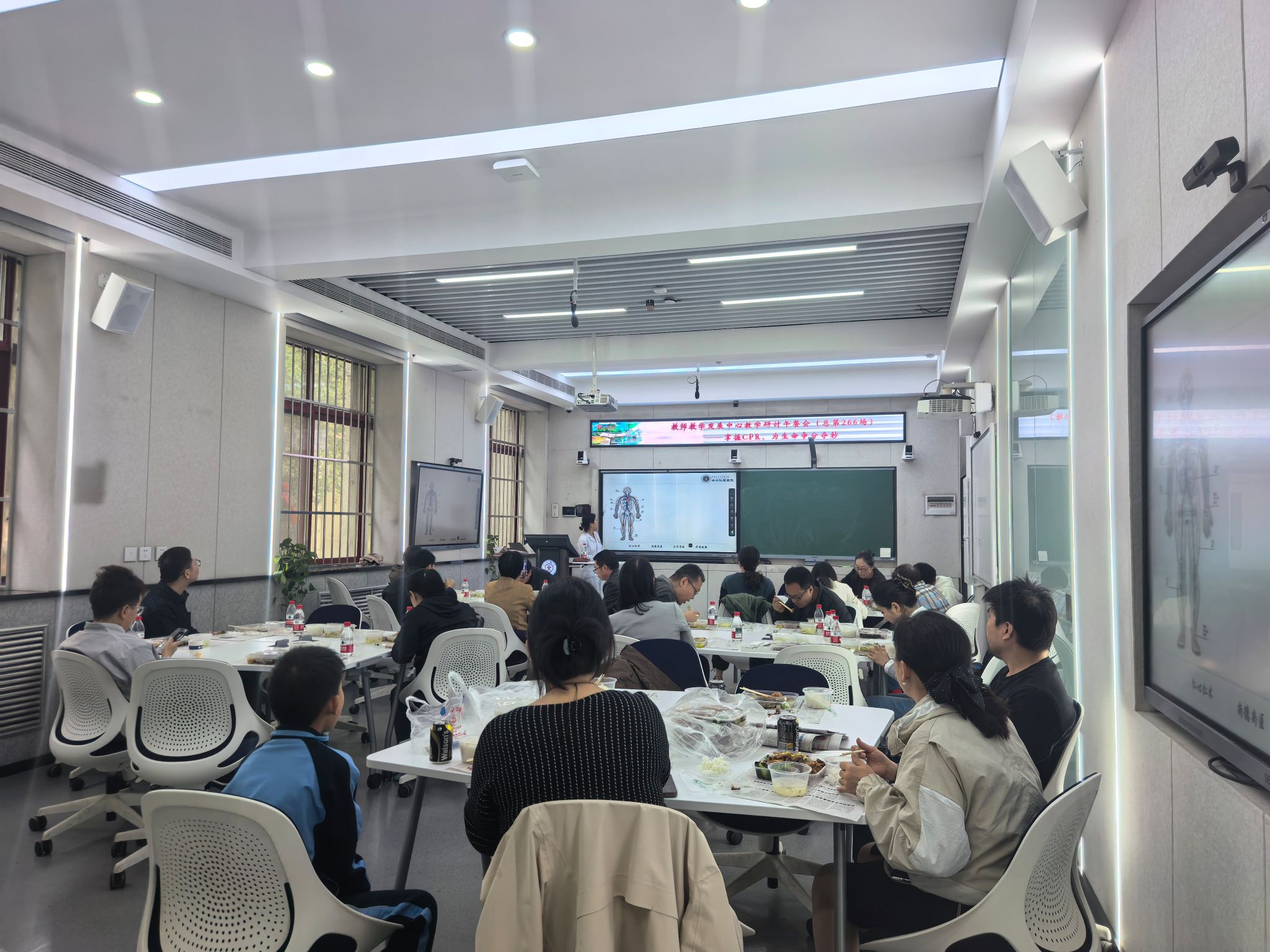 为提升教师应急救护能力,将生命教育融入日常教学与校园安全建设,4月9日,西安交大教发中心联合校工会举办“掌握CPR,为生命争分夺秒”教学研讨午餐会。西安交通大学第二附属医院急诊科主治医师杨妮应邀作专题分享,活动吸引了来自全校各学院的29位教师积极参与,现场气氛热烈。